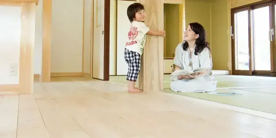 無垢材を使用したフローリングは、暖かな感触と心地よい感覚をもたらし、家全体に温かみを与えます。無垢材は湿度調整力に優れており、湿気を適度に吸収し、家の中を清潔で健康的に保ちます。森林浴のような心地よさと清潔な空気を毎日味わえる家づくりが実現します。