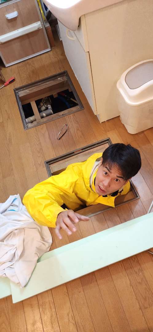 床下点検口の寸法が45㎝しかありませんので、細身の彼にお任せです。