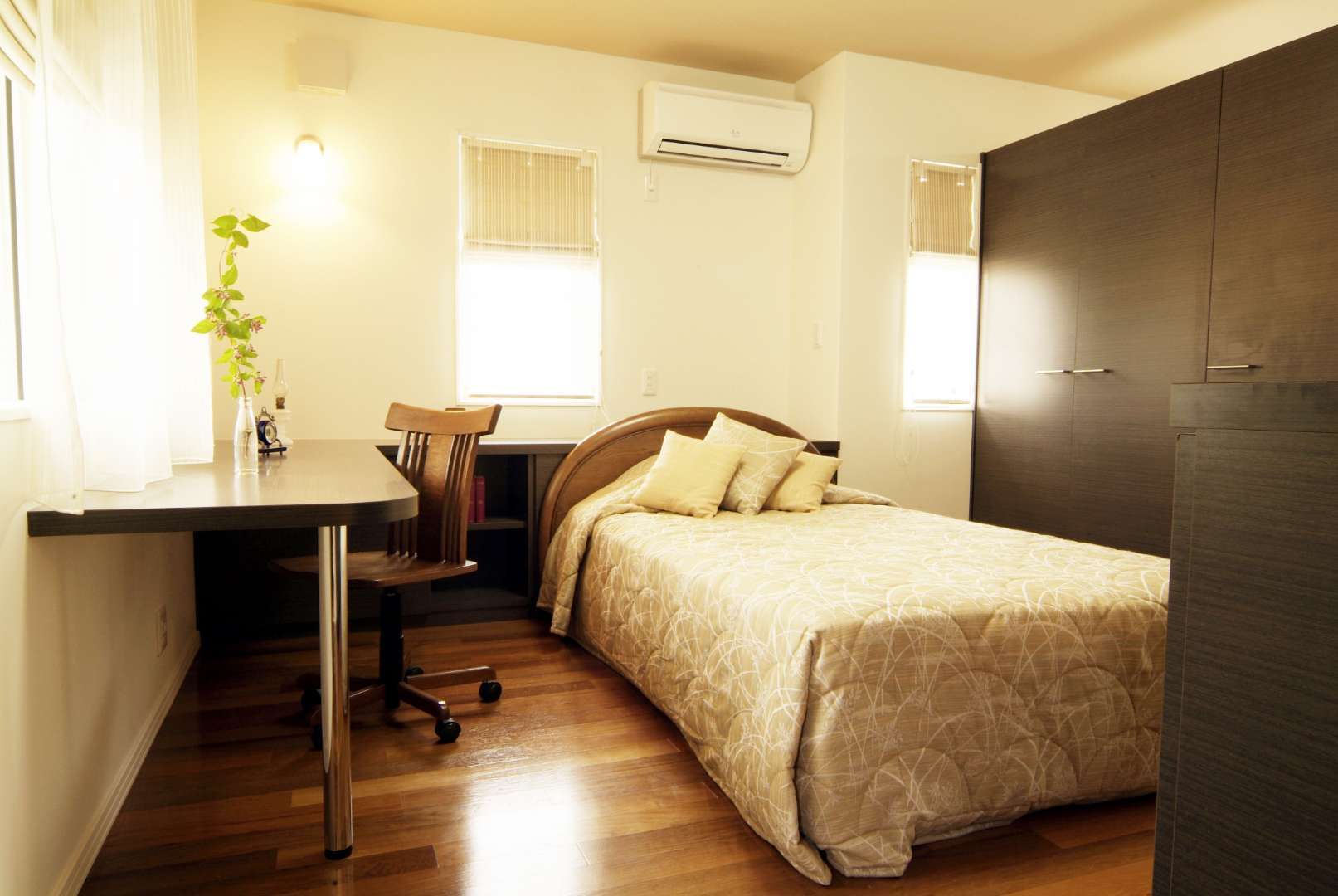 戸建て 新築 家具で間仕切る空間の事例 夫婦と言えどプライベート空間は大切です。家具で緩く間仕切ると程良くプライバシーが保てると考えています。一室でありながら、存在を意識しながら、プライベート空間を造るには、造作家具で仕切ると効果的です。 場所 兵庫県朝来市 1 / 1 前の施工事例 戸建て 豊岡市 薪ストーブ設置事例
